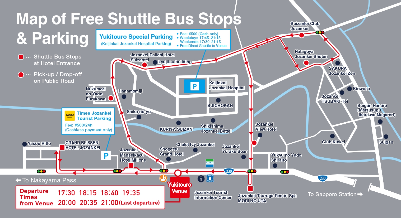 행사 기간 동안 온천 거리와 행사장을 순환하는 셔틀버스를 매일 운행합니다.