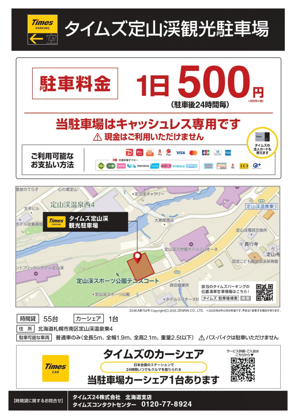 公共駐車場【タイムズ定山渓観光駐車場】のご案内
